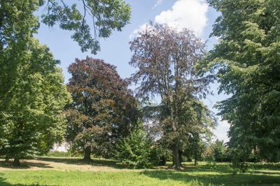 Couple of Fagus sylvatica in park of Miroslavské Knínice, group of memorable trees in Znojmo District, Czech Republic