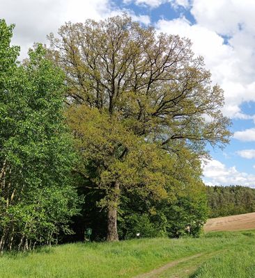 Quercus robur, memorable tree at Neznašov, České Budějovice District, Czechia