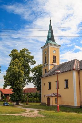 Kříž v Dobříkově u dřevěného kostelíku Všech svatých