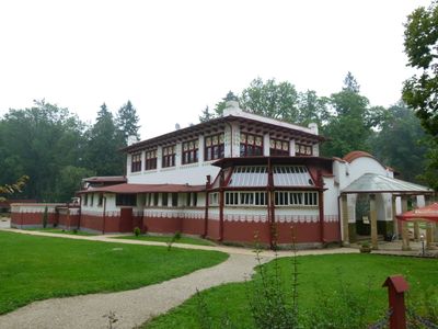 El pabellón Dvorana, construido en 1905 por el arquitecto Jan Letzel, representa el diseño Art Nouveau y permanece como monumento cultural protegido.