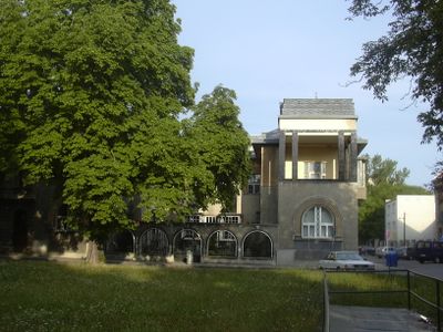 La villa exhibe arquitectura de principios del siglo XX diseñada por Emil Králík, con formas geométricas y líneas depuradas en su estructura exterior.
