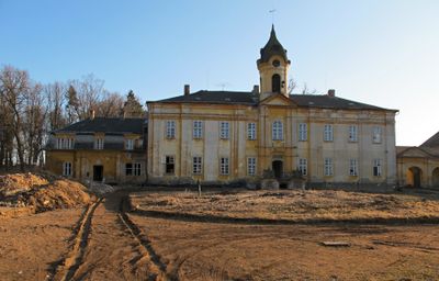 El castillo fue construido sobre los cimientos de una fortaleza renacentista que sufrió daños graves durante la Guerra de los Treinta Años. Después de este conflicto, fue reconstruido en estilo barroco y más tarde actualizado con toques neoclásicos.