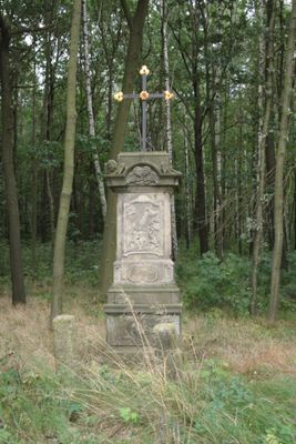 Podstavec s ulomeným křížem u silnice jižně od Křížového vrchu u Frýdlantu