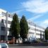 La planta baja alberga espacios comerciales, un servicio automotriz y el restaurante Náplavka en náměstí 5. května 835, Hradec Králové.