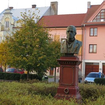 Pamětní deska Karla Kněžourka na domě 56 v Městci Králové