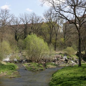 Jez pod zámkem, jez na Rokytné v Moravském Krumlově