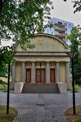 Chapel in Evangelic Cemetery in Strašnice, Capilla moderna en el Cementerio Evangélico, Strašnice, República Checa.