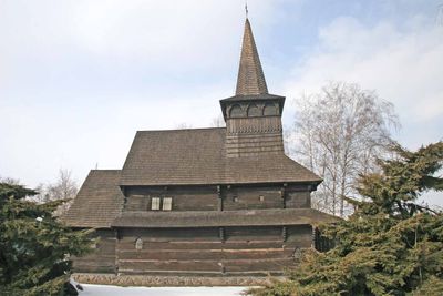 Kříž v Dobříkově u dřevěného kostelíku Všech svatých