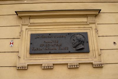 Pamětní deska Václava Černého na domě U Kanálky 1417/1 na Vinohradech