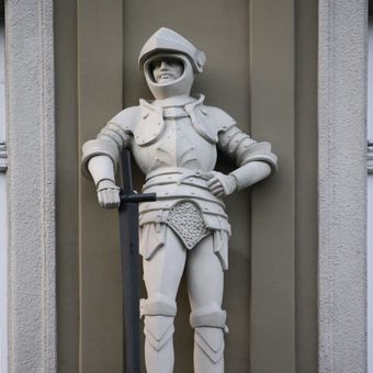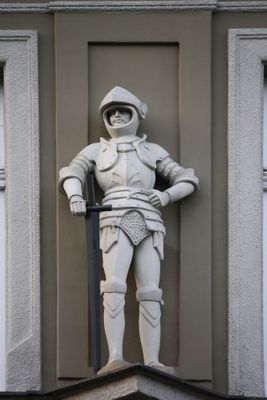 Socha rytíře na domě V Botanice 2 na Smíchově, statue in Smíchov, Czech Republic
