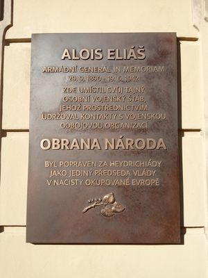 Pamětní deska generála Eliáše na Kolowratském paláci ve Valdštejnské ulici, pamětní deska v Praze