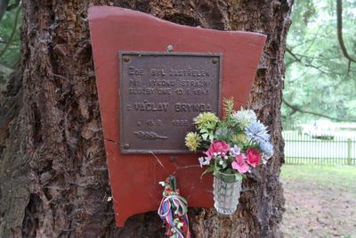 Pamětní deska V. Bryndy u zámečku Tři trubky, pamětní deska v obci Strašice, okres Rokycany