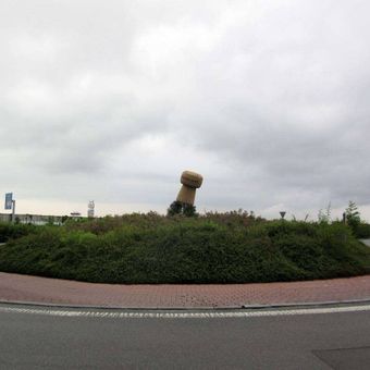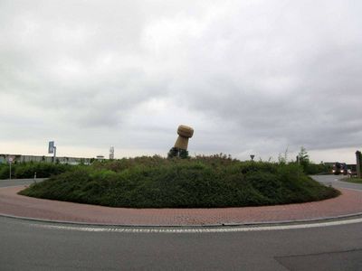 Zátka na kruhovém objezdu u Plzně, plastika v obci Starý Plzenec, okres Plzeň-město