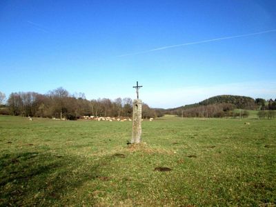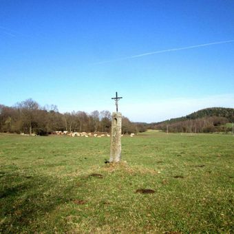 Kříž v poli severně od Buršic, pamětní kříž v obci Kolinec, okres Klatovy