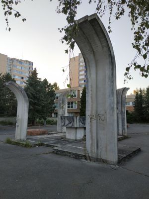 Centrální plastika Čtyři střední školy, plastika u školního areálu u Karlovarské ulice v Plzni