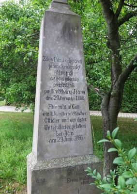 Pomník padlým 29.6.1866 z 73.pěšího pluku u hřbitova v Horním Lochově