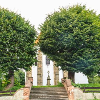 Kříž ve Vejvanovicích u kostela, pamětní kříž v obci Vejvanovice, okres Chrudim