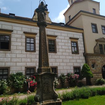 Sloup se sochou Panny Marie v Častolovicích před zámkem