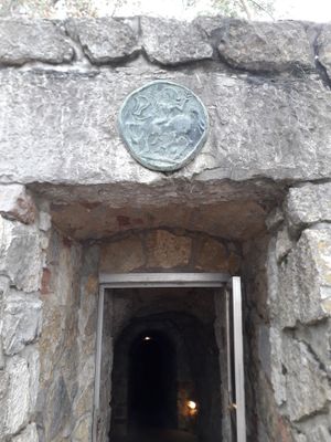 Bronzový reliéf nad východem z Koněpruských jeskyní, reliéf v obci Koněprusy, okres Beroun