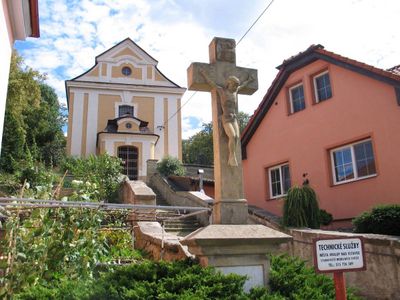 Kamenný pamětní kříž s korpusem Krista v Zeměchách, pamětní kříž v obci Kralupy nad Vltavou, okres Mělník
