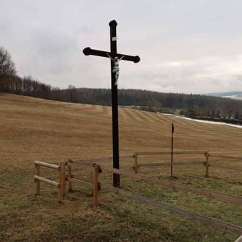 Kříž před kaplí v Komárově