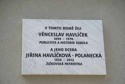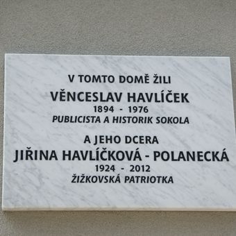 Pamětní deska Věnceslava Havlíčka a Jiřiny Havlíčkové-Polánecké na Radhošťské 15
