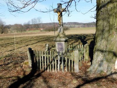 Kříž u silnice severovýchodně od Dudína, pamětní kříž v obci Dudín, okres Jihlava