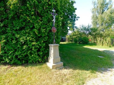 Cross behind chancel of Church of Saint James the Greater in Štoky