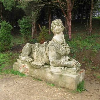 Socha sfingy ve Valticích v zámeckém parku, statue in Valtice, Czech Republic