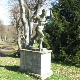Socha Herma v Teatronu v zámeckém parku ve Valči