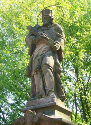 Socha svatého Jana Nepomuckého u cesty k vodojemu v Želechách