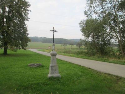 Kříž severně od Zadních Ptákovic před rozcestím, pamětní kříž v obci Nebřehovice, okres Strakonice