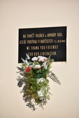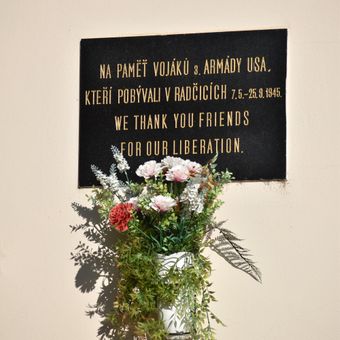 Pamětní deska na paměť vojáků 3. armády USA, deska na budově ÚMO Plzeň 7-Radčice