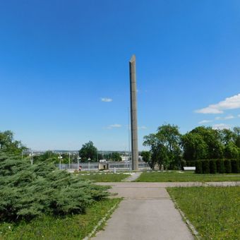 Betonový monument na čestném pohřebišti sovětských vojáků na Ústředním hřbitově v Brně