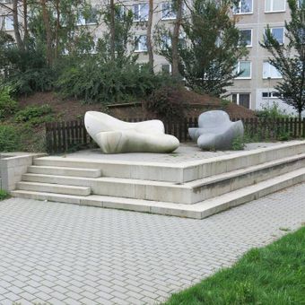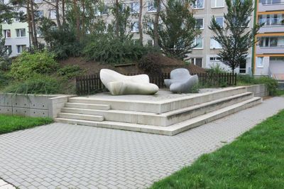 Kamenná plastika ve vnitrobloku ulice Trávníčkova ve Stodůlkách, منحوتة