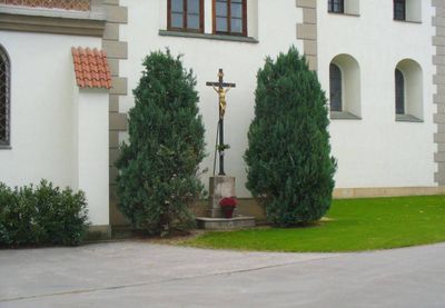 Kříž u zdi kostela svatého Jakuba Staršího v Zbraslavi, pamětní kříž v Praze
