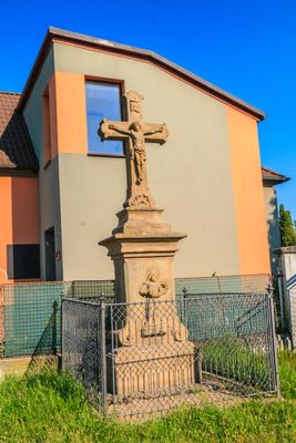 Kříž v Chrasti na křižovatce ulic Tyršova a Tylova, pamětní kříž v obci Chrast, okres Chrudim