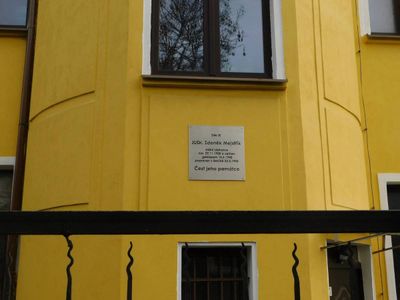 Pamětní deska Zdeňka Mejstříka na domě Na Hřebenkách 1320/40 na Smíchově