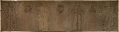 Pamětní deska židovských umělců umučených v koncentračních táborech na novém židovském hřbitově na Olšanech