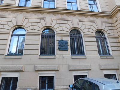 Pamětní deska Jaroslava Seiferta na domě Vlkova 800/31 na Žižkově