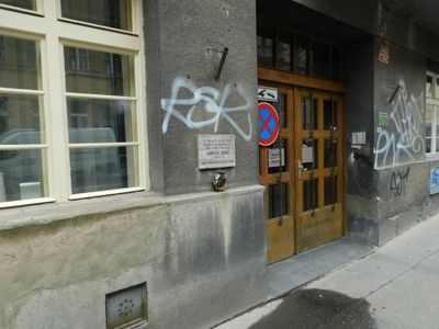 Pamětní deska Jaroslava Tobiáše na domě Šimáčkova 1451/11 v Holešovicích