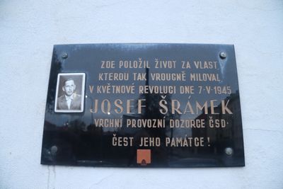 Pamětní deska padlým na barikádě v ulici Sdružení v Nuslích