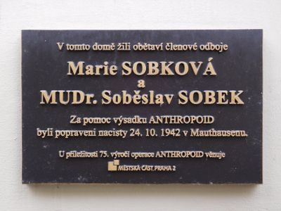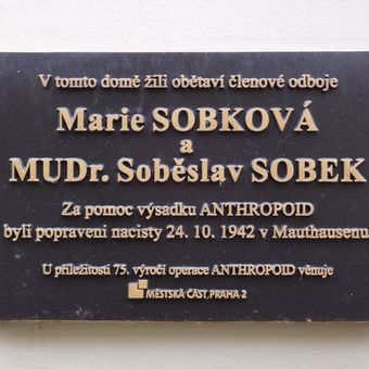 Pamětní deska Marie Sobkové a Soběslava Sobka v Italské ulici v Praze