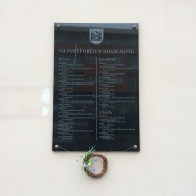 Pamětní deska obětem holocaustu na Masarykově náměstí v Říčanech