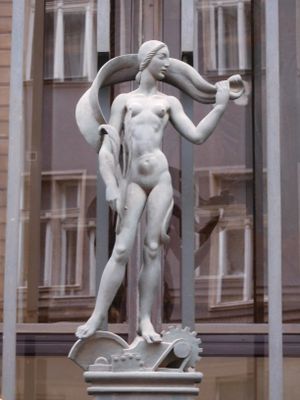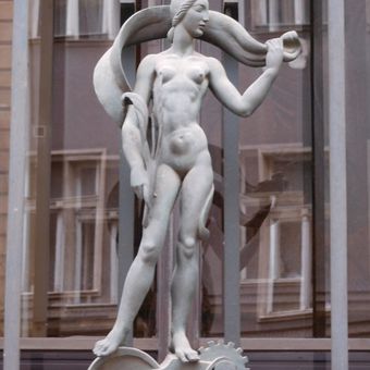 Statues on the Academy of Commerce Vinohradská