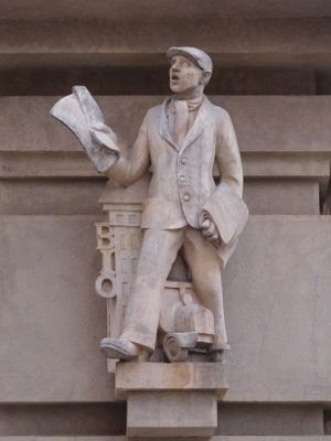 Statues on the Academy of Commerce Vinohradská, statues in Prague