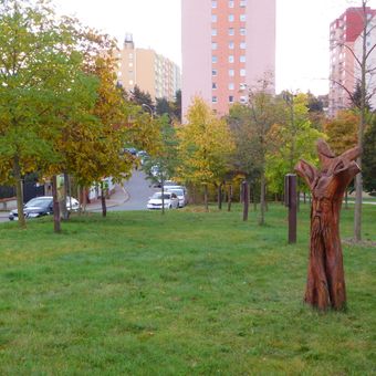 Keramická plastika ve vnitrobloku mezi ulicemi Čimelická a Mirotická v Praze