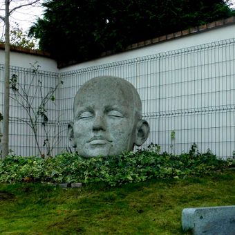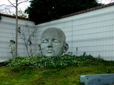 Socha v areálu Anglo – německé obchodní akademie na Břevnově, statue in Prague, Czech Republic