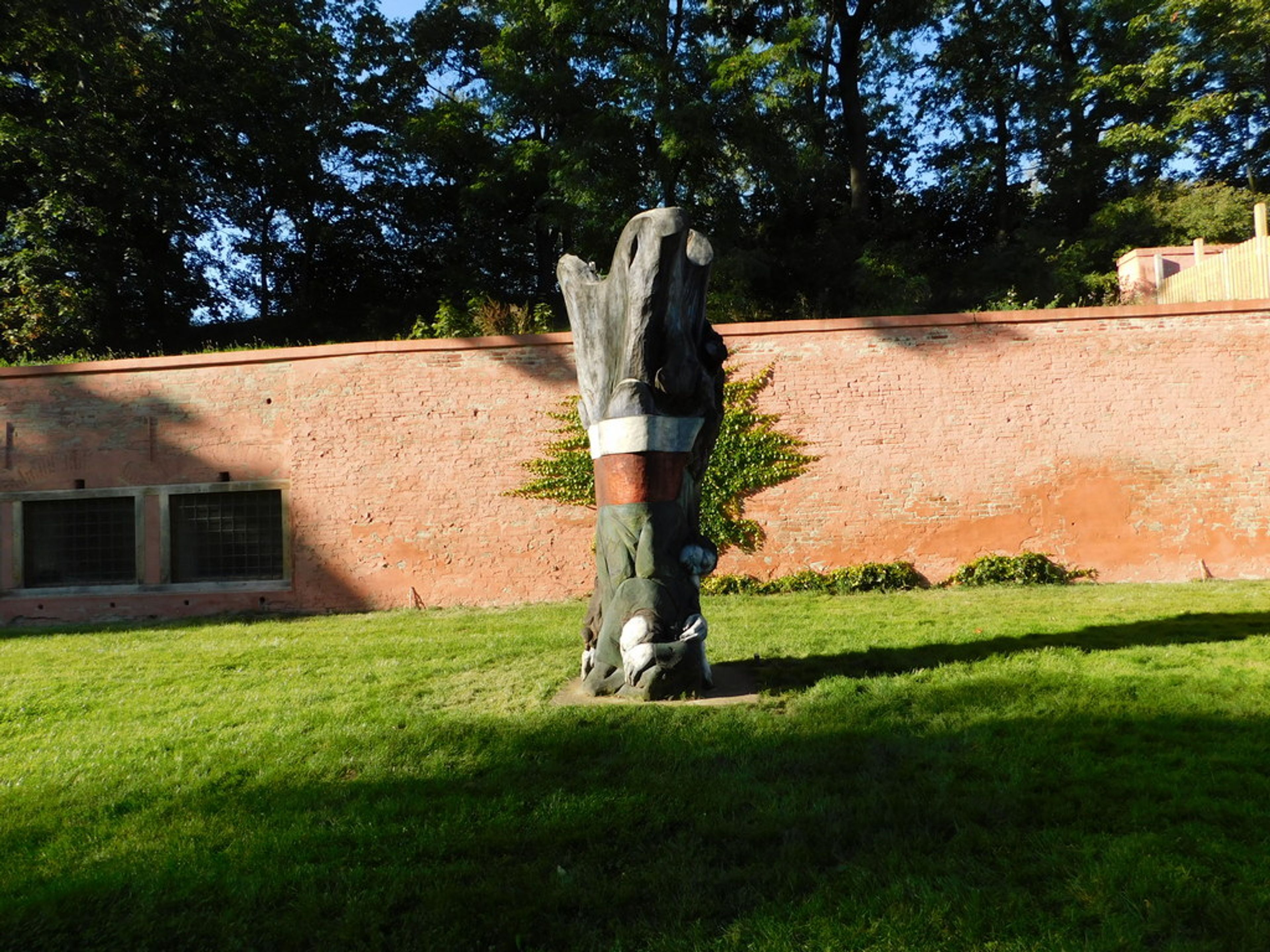 Socha v areálu Anglo – německé obchodní akademie na Břevnově