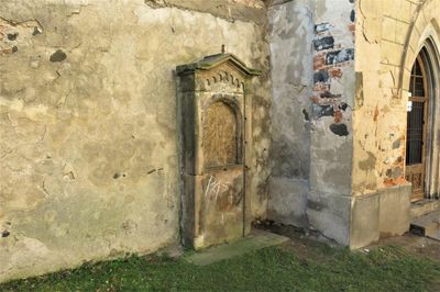 Pomník nejasného účelu v areálu kostela Nalezení svatého Kříže ve Frýdlantu